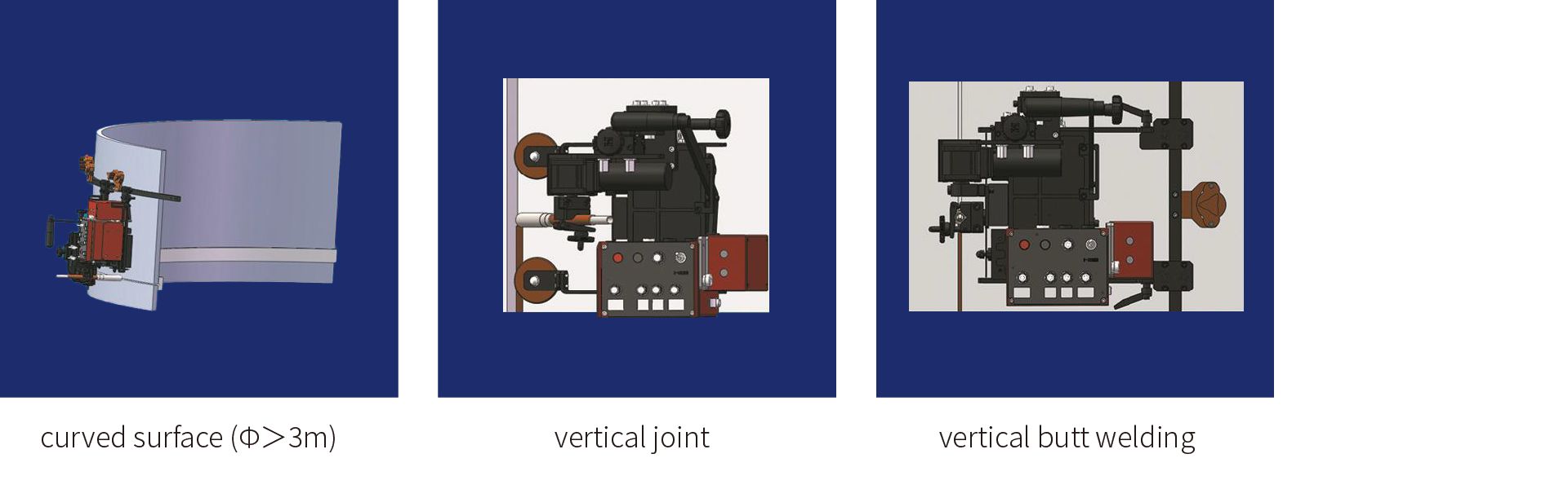 - Soft or hard rails are available for out-of-position welding operation such as on vertical or curved surface.